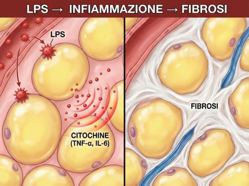 Si innesca un circolo vizioso: LPS → infiammazione → fibrosi → disfunzione linfatica → accumulo di fluidi e tossine → più infiammazione.