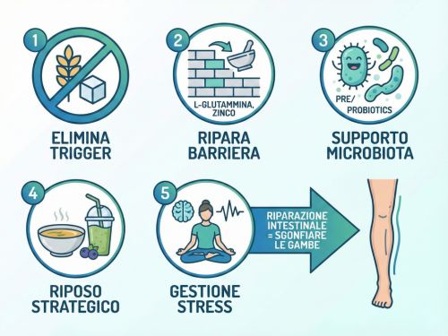 Sigillare l'intestino non è un optional: è la base per sgonfiare le gambe. Ecco la strategia in 5 step.