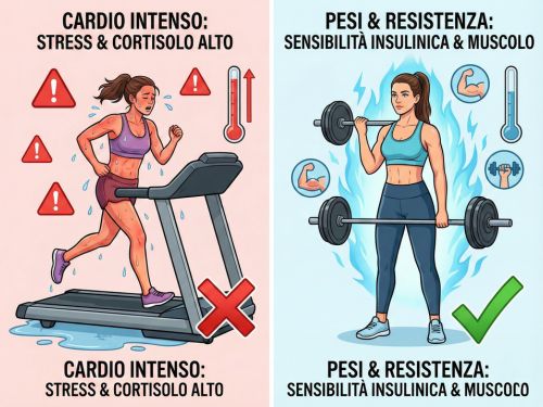 Ma ecco cosa succede: il cardio intenso e prolungato è uno stressor metabolico. Fa schizzare il cortisolo. Se il tuo corpo è già in sovraccarico di stress (cortisolo già alto, sonno scarso, ansia, restrizione calorica), aggiungere ore di cardio è come gettare benzina sul fuoco.